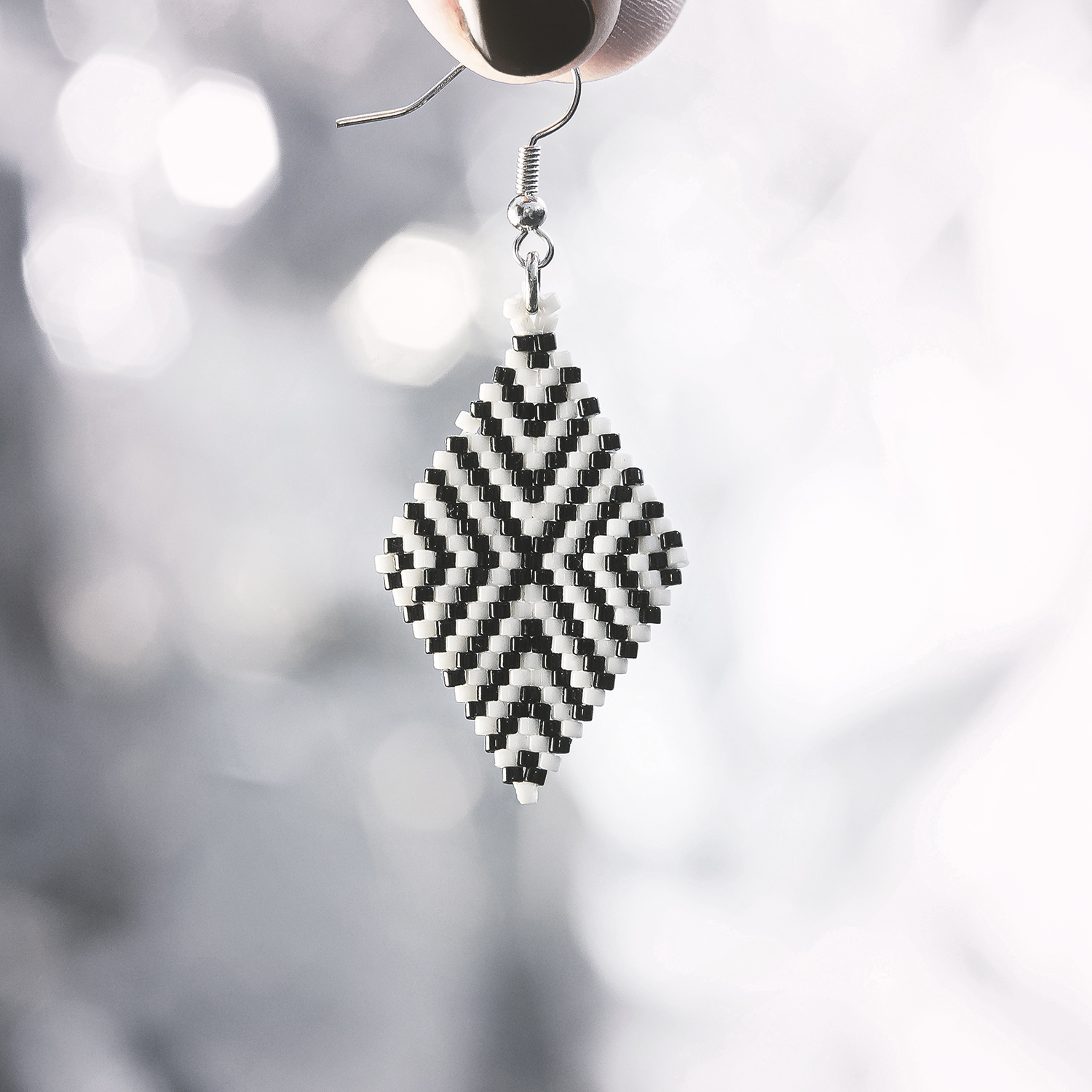 Rhombus B&W Miyuki Earrings
