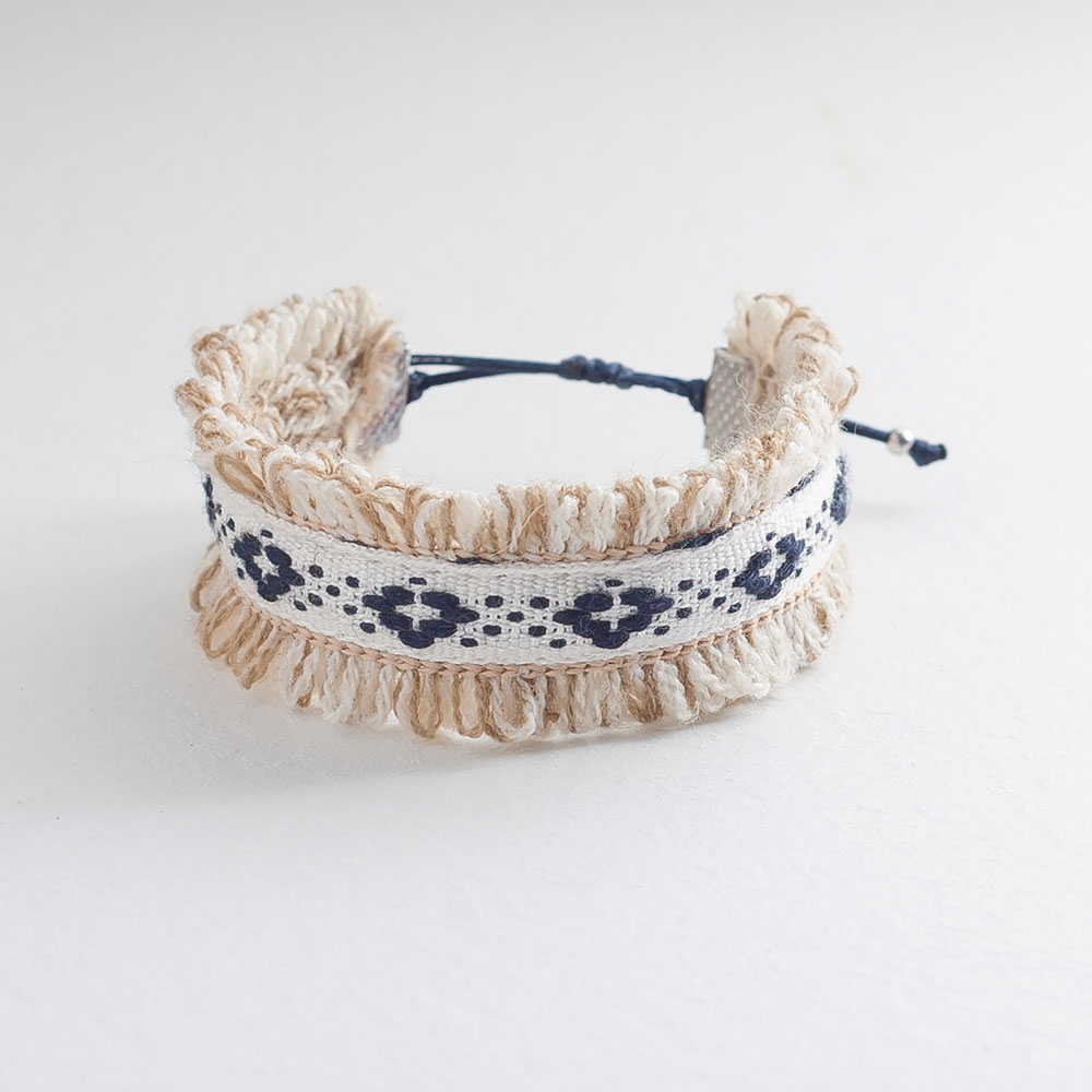 Υφασμάτινο εκκεντρικό βραχιόλι ιδανικό να το ταιριάξεις με το boho συνολό σου.