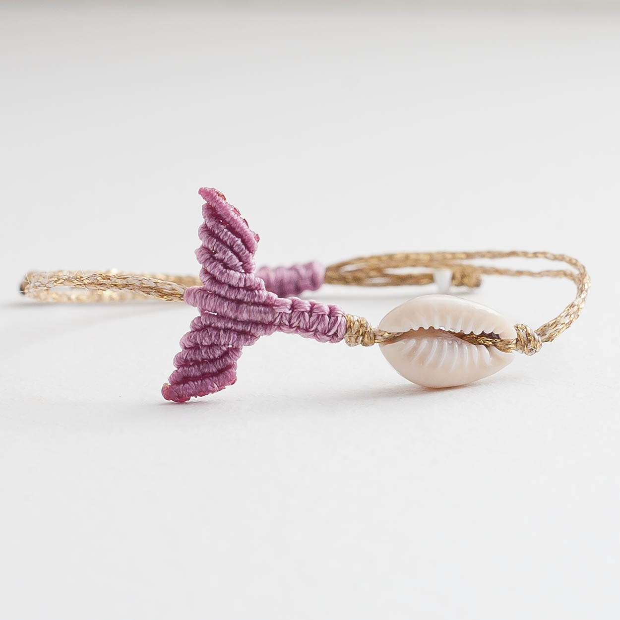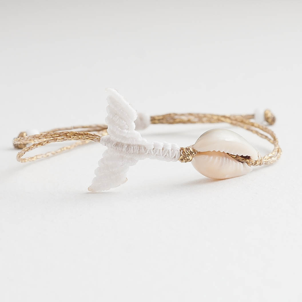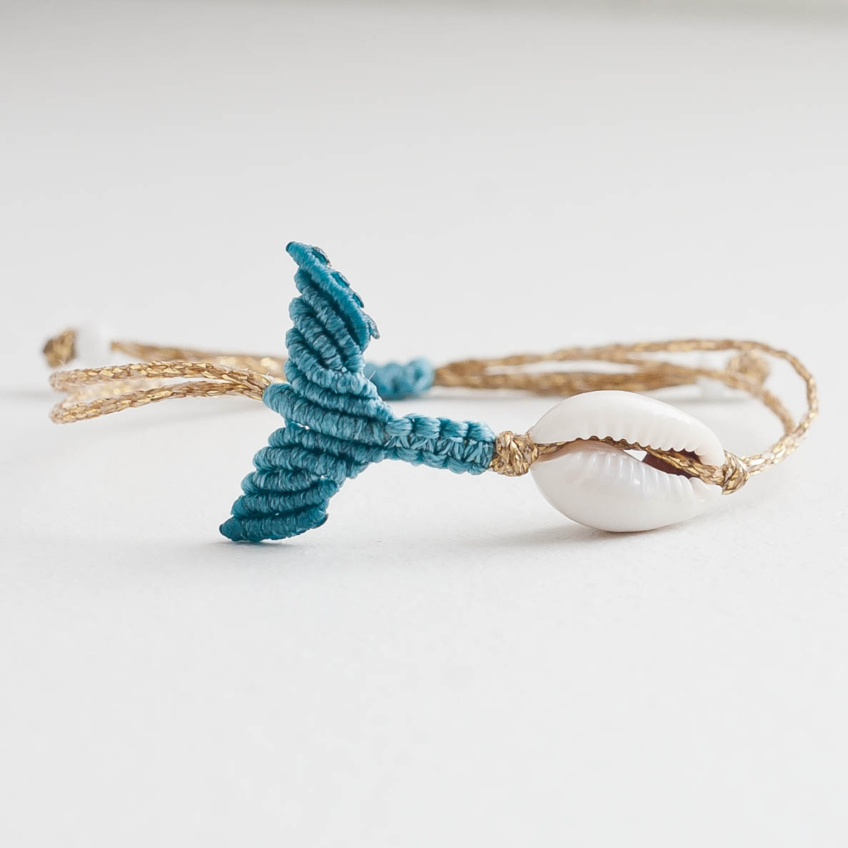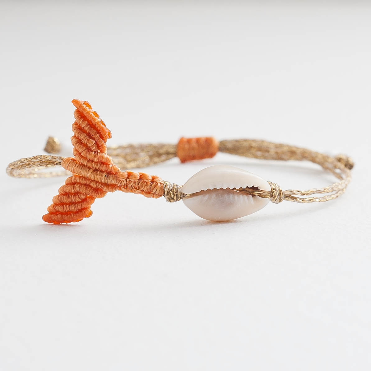 Χειροποίητο μακραμέ βραχιόλι ουρά ψαριού σε διάφορα χρώματα με κοχύλι σε κερωμένο χρυσό νήμα.