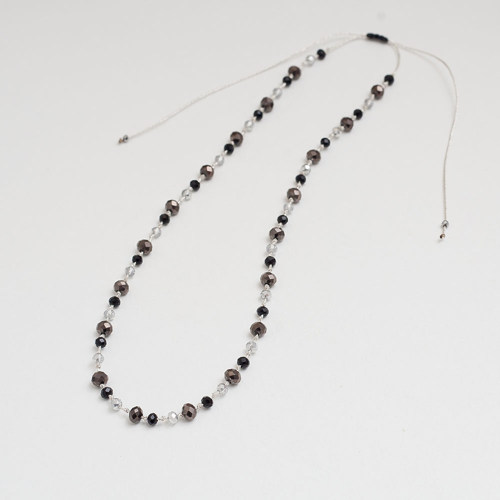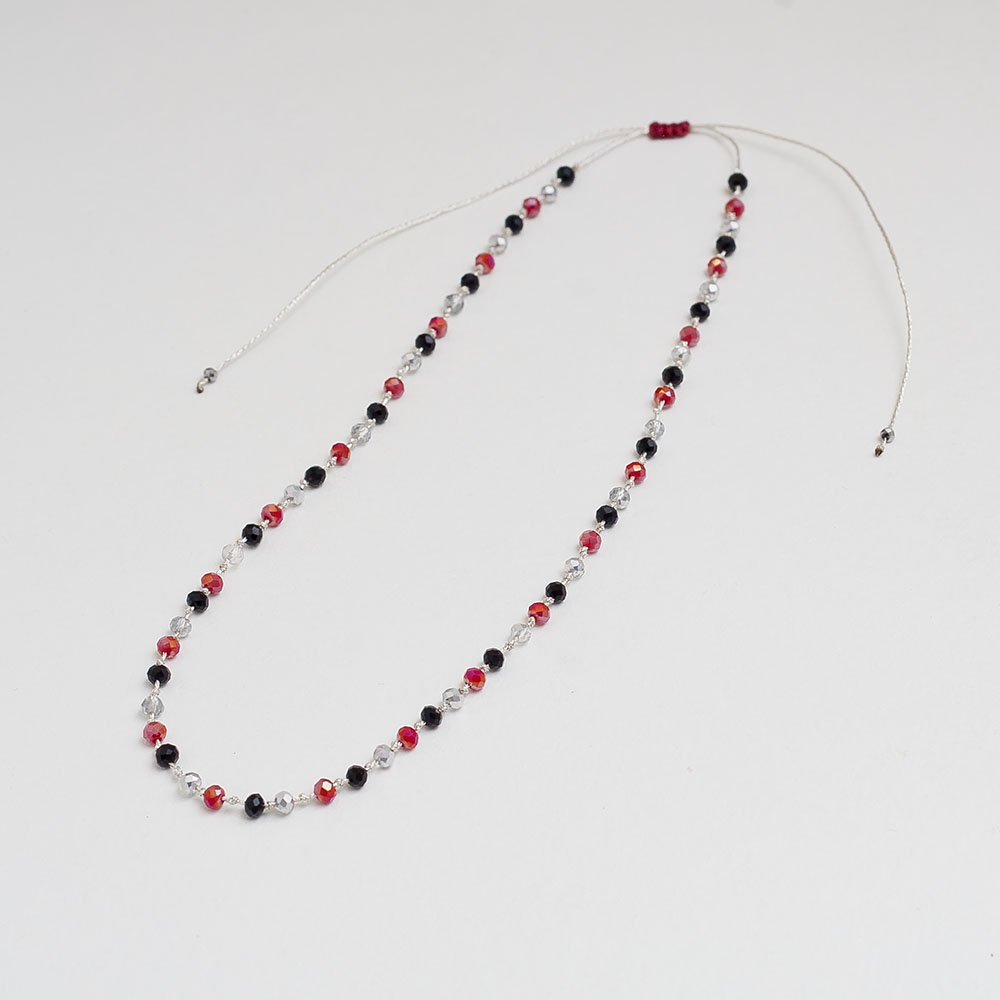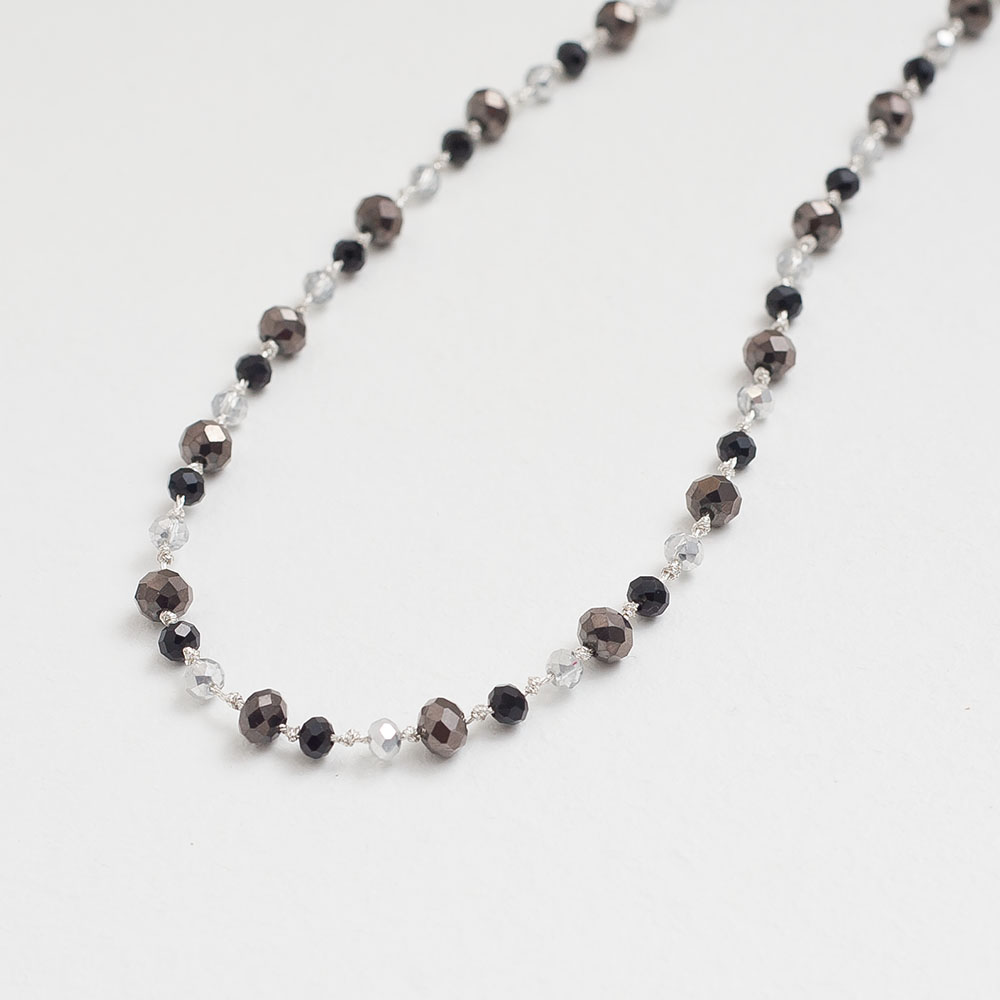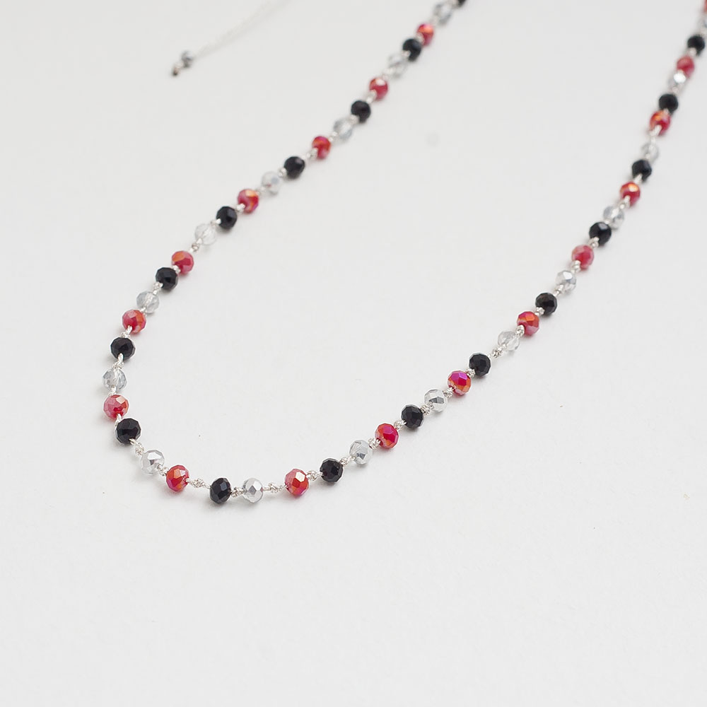 Το ροζάριο αυτό συνδυάζει πολύχρωμους κρυστάλλους με ασημί μεταλλικό νήμα, δημιουργώντας ένα εντυπωσιακό και κομψό σχήμα. Οι λαμπερές αποχρώσεις των κρυστάλλων προσφέρουν μια μοντέρνα αίσθηση, ενώ το χρυσό νήμα προσθέτει πολυτέλεια και φινέτσα. Ιδανικό για καθημερινή χρήση ή ειδικές περιστάσεις, αυτό το ροζάριο είναι ένα διαχρονικό αξεσουάρ που αποπνέει κομψότητα.